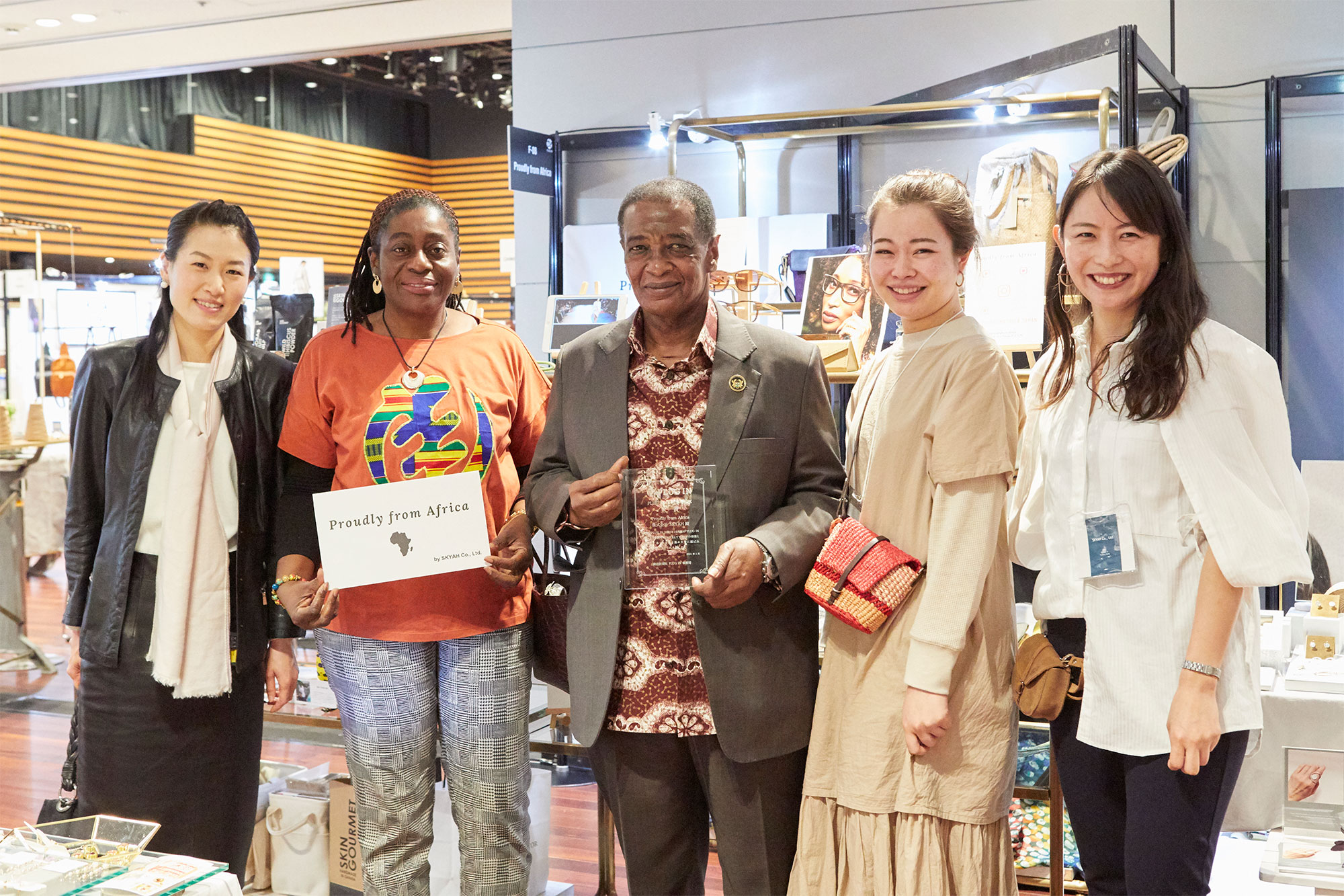 《原さん》有難うございます。初めての合同展への出展で、連日あわただしくご商談をさせていただいていたので、賞について教えていただいてとても驚きました。ファッションに携わる多彩な来場者の方から、とても多くの評価をいただけたことは率直に嬉しいです。エシカルでサステイナブルな、高品質のアフリカブランドという特徴も、興味をもっていただけたのかと思います。